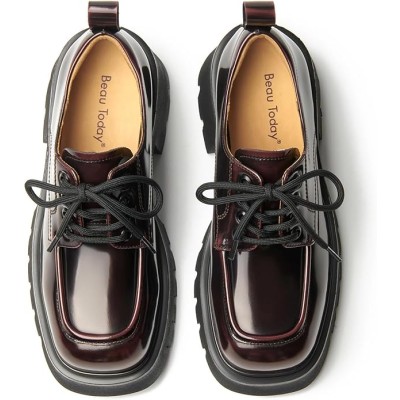 Chunky Platform Oxford Shoes for Women - Classic Lace-Up Leather Comfortable Business Lug Sole Work Office Shoes